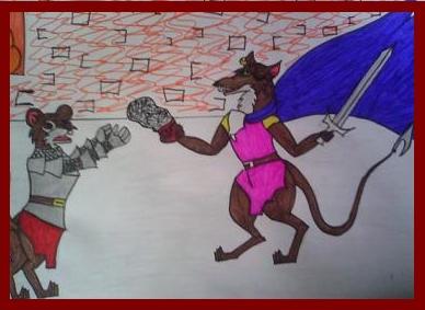 Мыш-Воин угрожающе махнул мечом, и выстроившиеся перед Клуни солдаты во главе с Краснозубом тут же сомкнули щиты, прикрывая командование, но Клуни презрительно отпихнул их в стороны и с мечом наголо вышел вперёд. Не успели щиты сомкнуться вновь, как в прореху тут же проскочила Крыска, а за ней полный решимости защищать любовь командира до последней капли крови (желательно, вражеской) Краснозуб. Воины образовали полукруг, замкнув Клуни и его врагов в стальную дугу. Под сводами прокатился громовой голос полководца:
