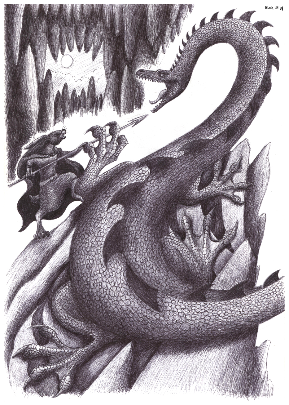 Нарисовано по мотивам книги Б. Джейкса "Остров королевы" (High Rhulain). Заяц Катберт сражается с озёрным чудовищем, неким доисторическим ящером вроде плезиозавра или же драконом (в книге точно не сказано, кем он был). Бой был неравным и победителя в нем не было. Но так говорится в сказке. Кто знает, как всё было на самом деле? Наверное, только сам озёрный змей, который очень не любил проигрывать.