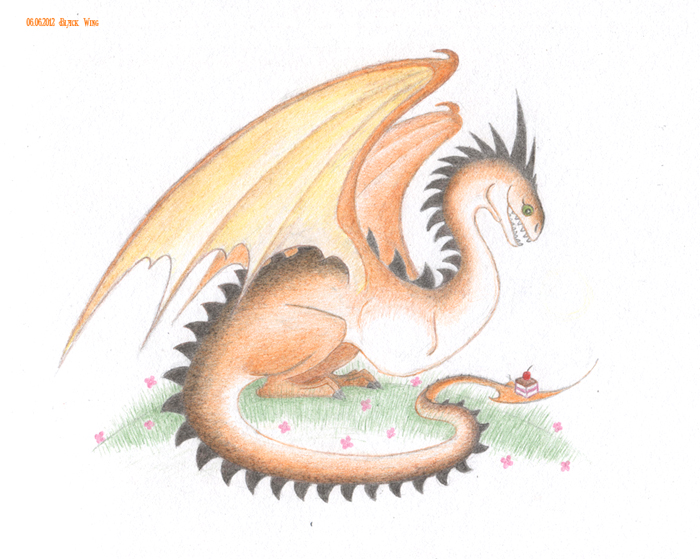 Характер этой средиземской виверны полностью соответствует цвету ее шкуры. Она непредсказуема, как огонь. Проказница может подкрасться к вам сзади и фыркнуть в затылок, сбив вас с ног или осыпать ... украденной у какого-нибудь хоббита одеждой, которую тот вывесил посушиться. Однако, если она решила взять навсегда то, что ей не принадлежит, без подарка вы не останетесь. Дело в том, что у этих крылатых существ есть интересный обычай, о котором вы не прочитаете в книгах Профессора: если виверны крадут у вас какую-то вещь, которая им особенно нравится, взамен ящер оставит вам то, что считает красивым: цветок, необычный камень, косточку или причудливую корягу. Рыжая (назовем нашу героиню именно так) увидела однажды пирожное, которое какой-то особенно забывчивый хоббит оставил на подоконнике открытого окна. Признаться честно, эта виверна никогда не откажется перекусить чем-нибудь сладеньким, а тут-такая прелесть прямо под носом!