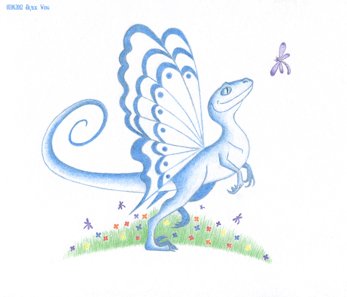 Легко, словно дуновение сонного ветра древним летним днем, прыгает он по пестрому лугу, даже не замечая, что будто бы летит, едва касаясь тонкими лапками земли. Он не знает, что через много-много лет его далекие родственники, птицы, станут хозяевами небес и будут вдохновлять своим полетом поэтов, художников и даже ученых, ведь любое творчество начинается с мечты. Но он этого не знает. Он просто мечтает летать, как эта юркая аметистовая стрекоза, что решила поиграть с ним в догонялки.