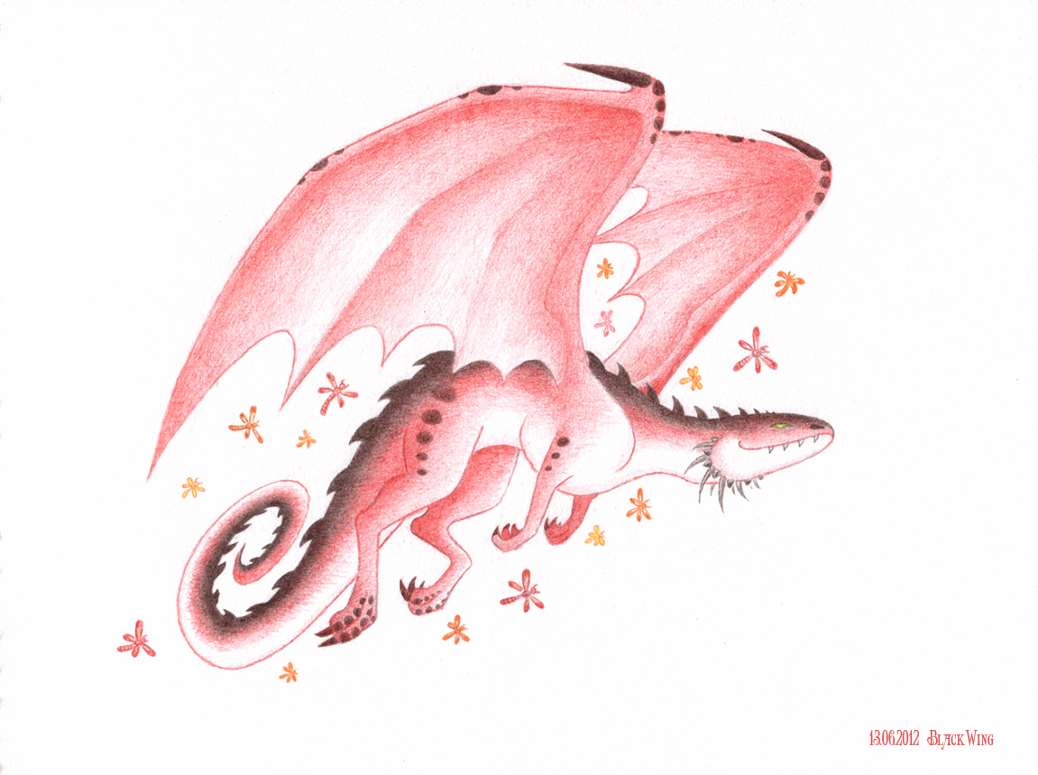 Вихрем крыльев и красной чешуи несется он по небесам в сопровождении своей свиты-красных, оранжевых и золотистых стрекоз. Когда не умеющие летать смотрят с земли на его стремительный полет, им кажется, будто по небу в ярких искрах пролетела пылающая звезда. За это некоторые из них прозвали его Кометой. Он знает об этом и широко улыбается милым фантазиям этих чудаков, которые так сильно привязаны к миру под ногами и одновременно так же сильно мечтают научиться летать.