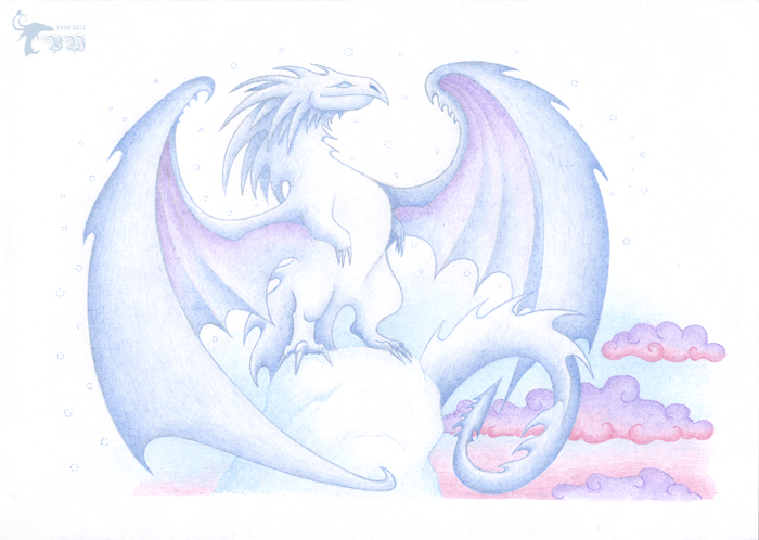 Хранитель заснеженных пиков серых гор, хозяин ледяных небесных просторов, его стихия-холодный мир, где мороз обжигает щеки облакам, а Солнце кажется давно остывшей, но все еще хранящей свое сияние звездой. Но даже в этом свирепом мире есть место жизни и прохладному, но по-северному красивому лету, ведь под мощной чешуей этого змея бьется живое, драконье сердце.